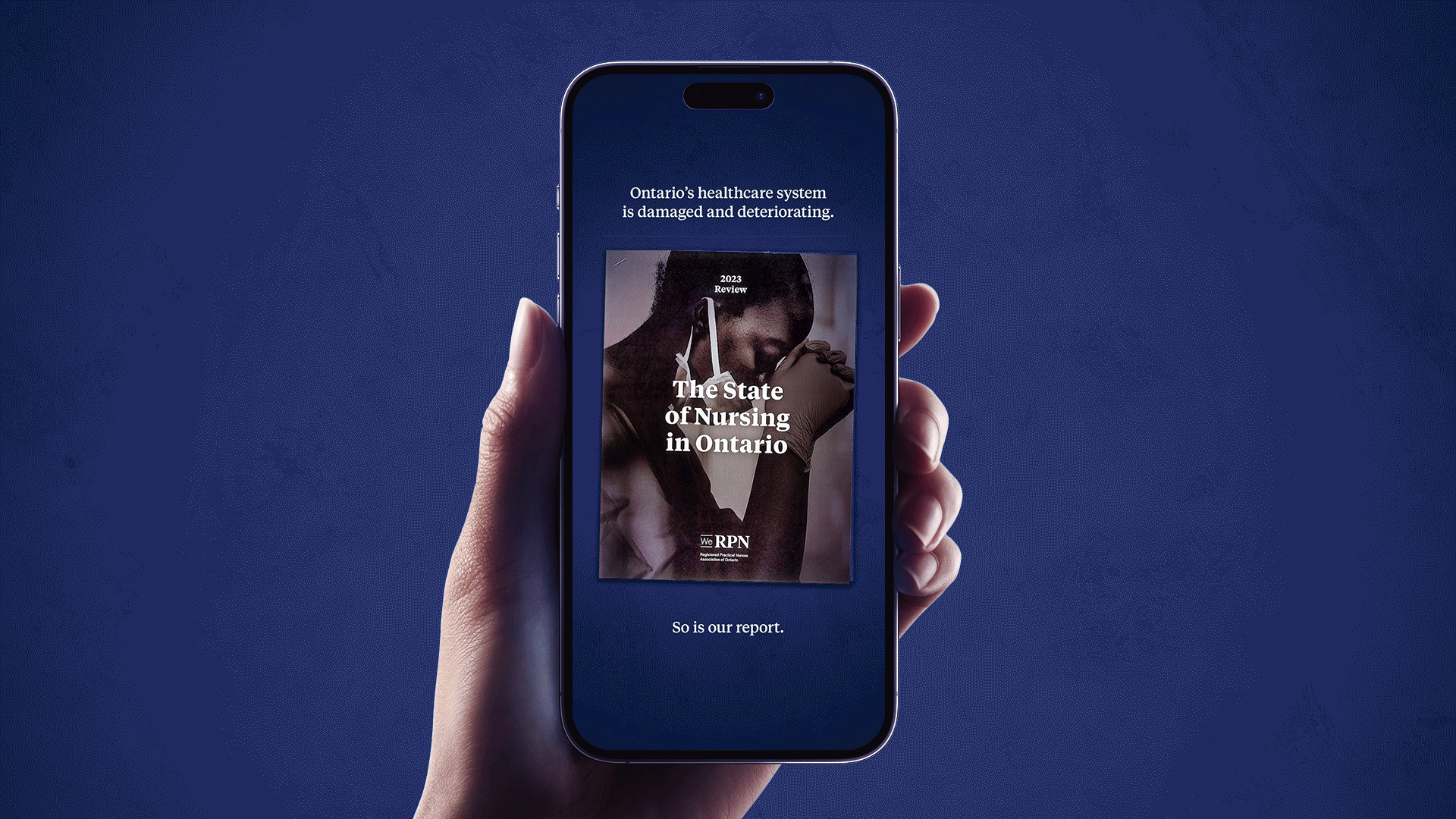 To illustrate this, we designed the report to appear as damaged as its findings. This impactful visual bolstered ongoing PR efforts and WeRPN’s advocacy for nurses during a critical period in the province.